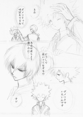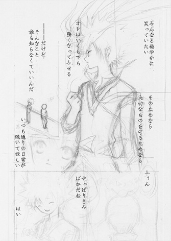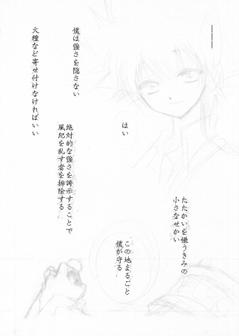 思いっきり下描き状態のものに台詞だけ貼り付け(笑)。